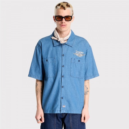 La S/S Lucas Shirt está confeccionada en tejido denim de algodón de peso medio y presenta un corte holgado. En la parte delantera muestra un logotipo de “C” bordado.