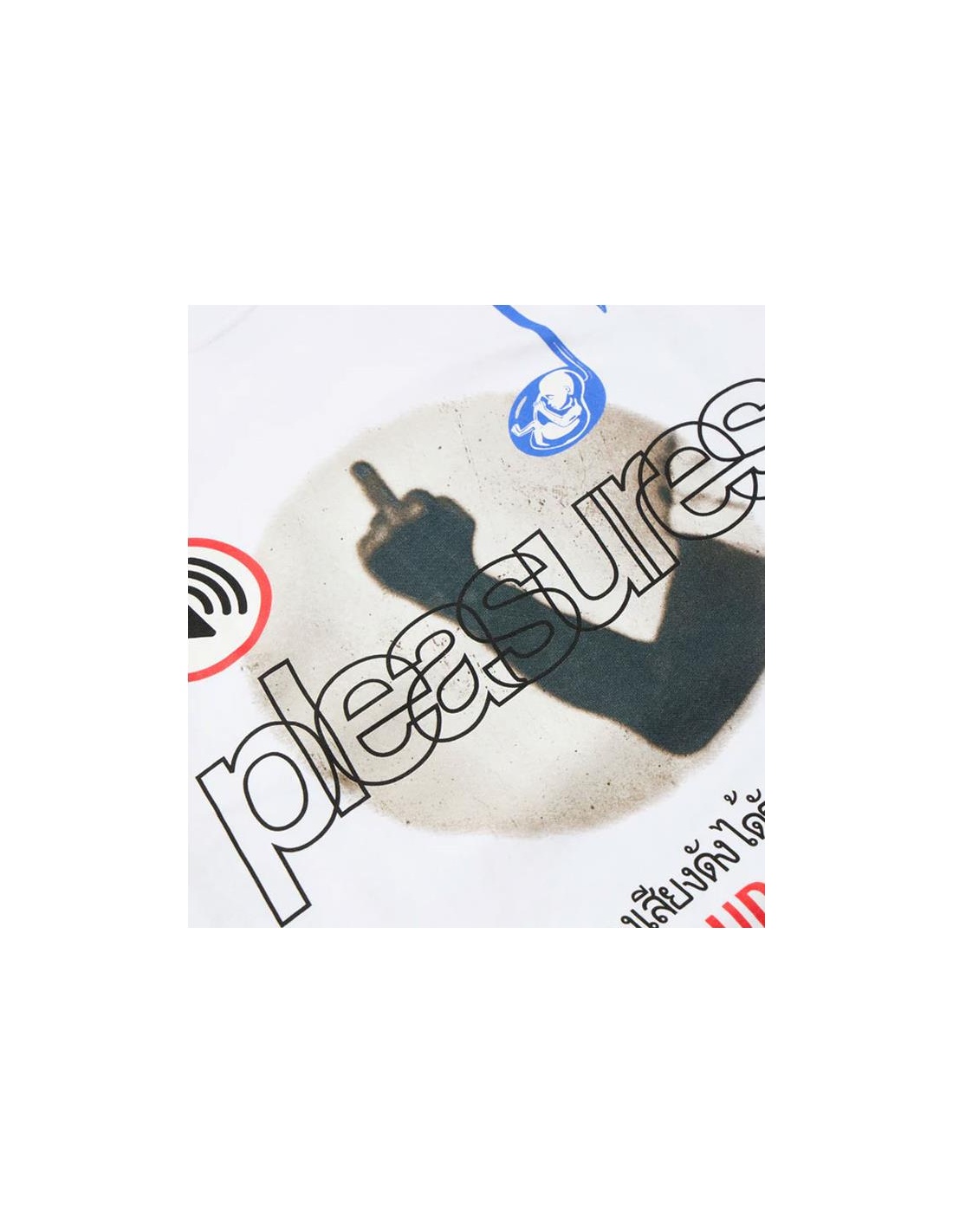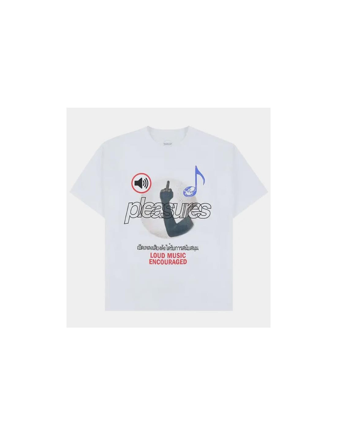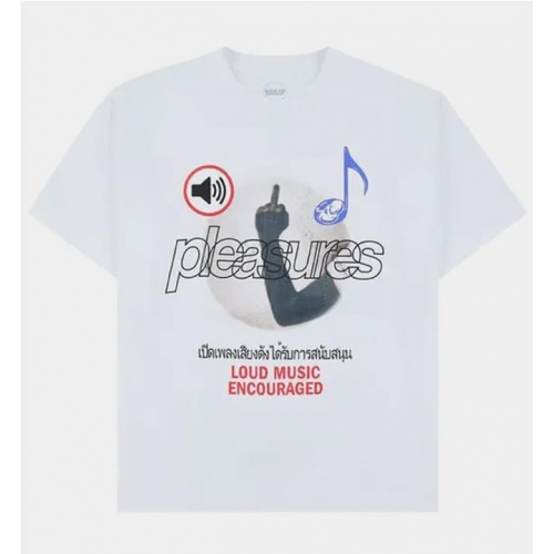 La camiseta negra Loud Music de Pleasures, confeccionada con tejido jersey grueso, es una colaboración con la productora musical Boiler Room. La camiseta de algodón luce gráficos estampados en ambos lados que evocan los sentimientos y el simbolismo de los eventos de Boiler Room.