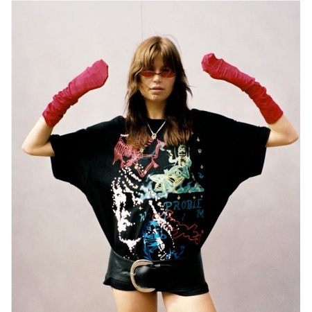 Estampado gráfico al agua en el pecho.
