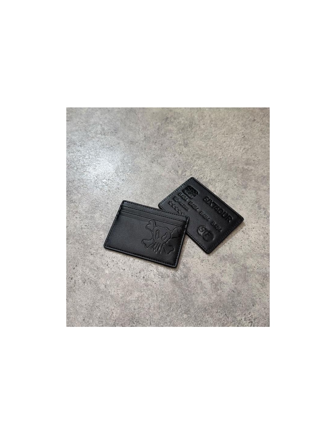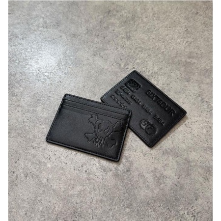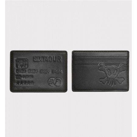 La cartera Blitz está hecha de piel sintética con tachuelas. Luce un logo grabado en el frente y tiene un compartimento para billetes, cuatro ranuras para tarjetas y una cadena para sujetarlo.