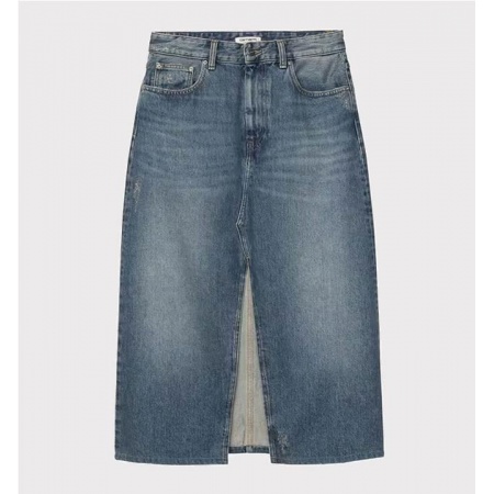 La falda para mujer Brandon tiene un corte relajado y está confeccionada en denim de algodón pesado. Inspirada en un vaquero de cinco bolsillos, presenta un canesú trasero y una abertura delantera. Las puntadas de remate y remaches metálicos en zonas sujetas a tensión añaden los detalles utilitarios. Una etiqueta cuadrada tejida completa el diseño.