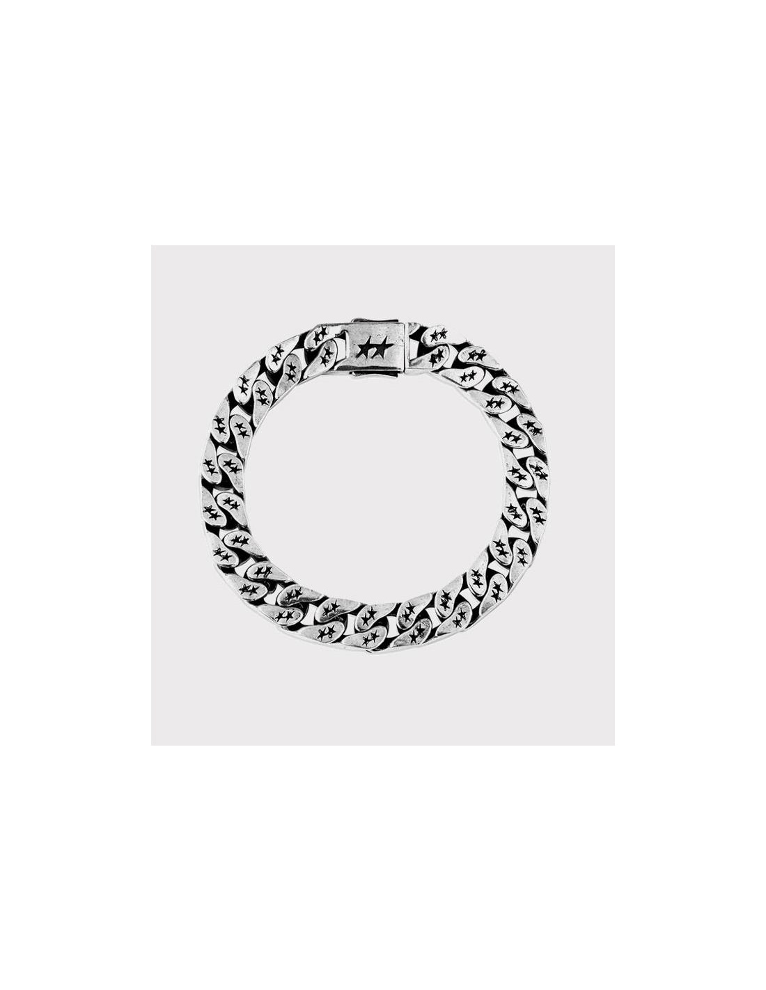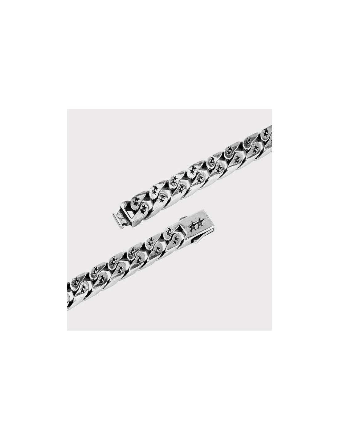 Atrevida pulsera cubana con una nueva forma personalizada de TwoJeys, detalles artesanales de estilo vintage. Base de latón con un baño de plata de 12 micras de alta calidad.