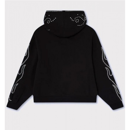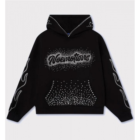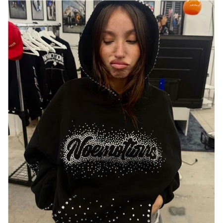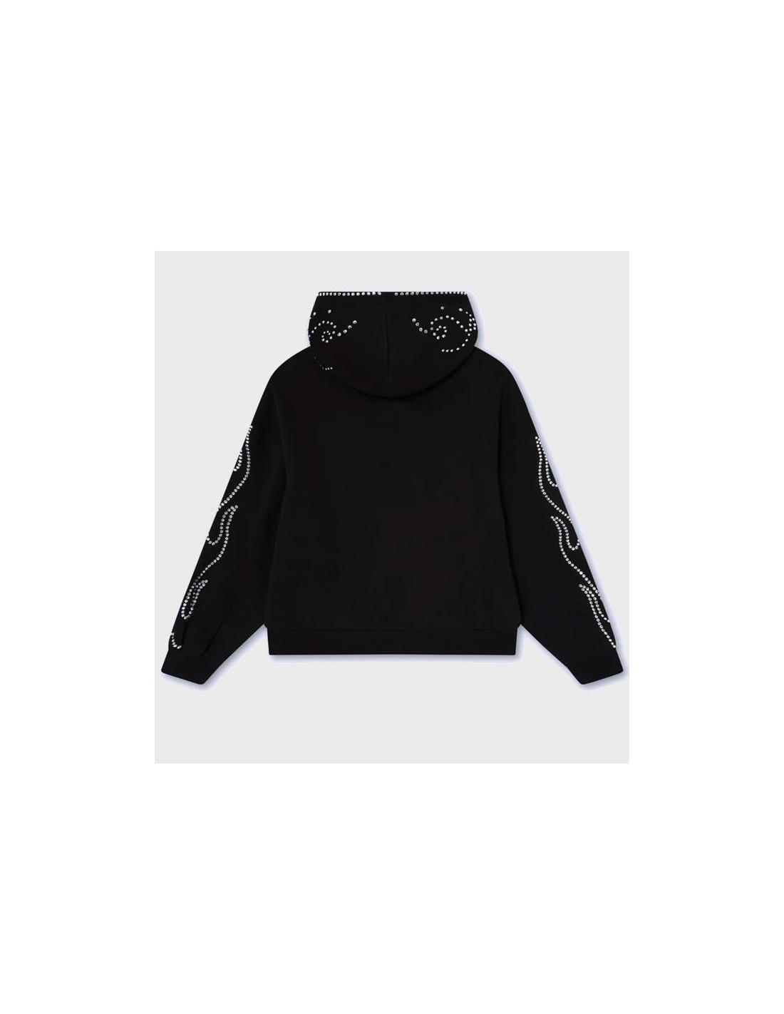 Letras "Noemotions" con efecto brillante y pedrería en la parte delantera. Bolsillo canguro con estampado de puntos de pedrería. Motivos curvos de remolino de pedrería en las mangas y la capucha. Corte holgado extragrande con hombros caídos. Puños y bajo acanalados.
